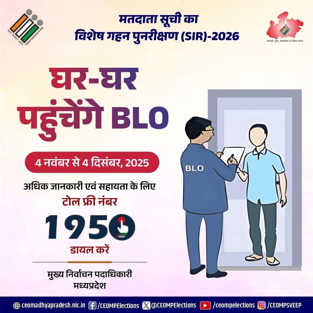 खंडवा – भारत निर्वाचन आयोग के निर्देश पर प्रदेश में विशेष गहन पुनरीक्षण कार्यक्रम के तहत इन दिनों बूथ लेवल अधिकारी घर-घर जाकर मतदाता सूची के सत्यापन के लिए मतदाताओं के निवास पर जाकर उनके नाम, पता, आयु एवं अन्य विवरणों का भौतिक सत्यापन कर रहे हैं। कलेक्टर एवं जिला निर्वाचन अधिकारी ऋषव गुप्ता ने इस कार्य में लापरवाही बरतने पर 3 बीएलओ को तत्काल प्रभाव से निलम्बित करने तथा 2 बीएलओ का 1-1 माह का वेतन काटने के आदेश जारी किये हैं। उन्होंने विशेष गहन पुनरीक्षण कार्यक्रम में लगे सभी अधिकारी कर्मचारियों को निर्वाचन कार्यों को पूरी गंभीरता के साथ समय सीमा में कार्य पूर्ण करने के सख्त निर्देश दिए हैं।
