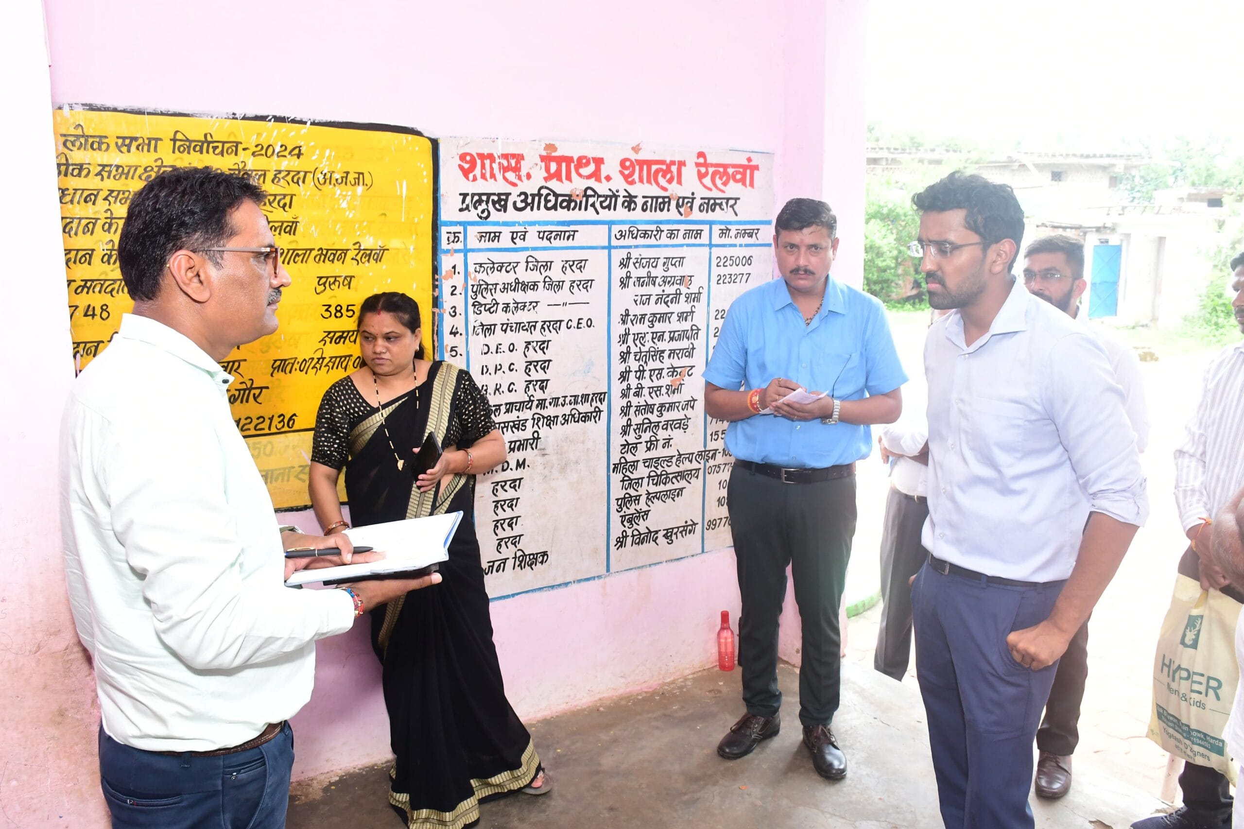 ग्राम देवतलाब की माध्यमिक शाला में छात्रों की उपस्थिति कम पाये जाने पर शिक्षक को अभिभावकों से सम्पर्क कर विद्यार्थियों को स्कूल भेजने के लिये प्रेरित करने के निर्देश दिये। यहां उचित मूल्य की दुकान में राशन हितग्राहियों की ई-केवायसी की प्रगति की भी कलेक्टर ने जानकारी ली। आंगनवाड़ी केन्द्र पहुँचकर वहां की व्यवस्थाएं देखीं और आंगनवाड़ी केन्द्र के आसपास साफ-सफाई कराने के निर्देश दिये। ग्राम बैड़ी में स्कूल का निरीक्षण किया एवं परीक्षा परीणामों की जानकारी ली। साथ ही विद्यार्थियों से पढ़ाई की व्यवस्था पर भी चर्चा की। ग्राम रेलवां में उचित मूल्य की दुकान का निरीक्षण किया एवं उर्वरक वितरण व्यवस्था की भी ग्रामीणों से जानकारी ली। यहां आंगनवाड़ी केन्द्र व्यवस्थाएं भी कलेक्टर ने देखी। यहां की प्राथमिक शाला में एक टीचर की व्यवस्था और करने की निर्देश शिक्षा विभाग के अधिकारियों को दिये। ग्राम अजनास के माध्यमिक स्कूल में विद्यार्थियों को गणित की किताब उपलब्ध नहीं होने पर कलेक्टर द्वारा तत्काल उक्त व्यवस्था करने के लिये अधिकारियों को पाबंद किया