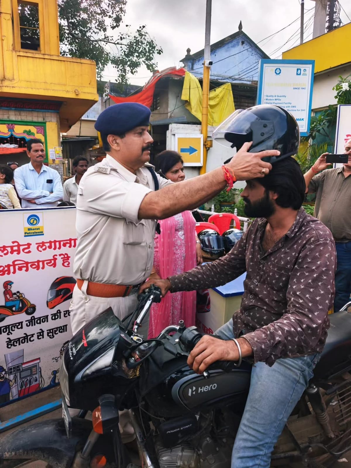 इटारसी रेलवे स्टेशन के सामने पेट्रोल पंप पर SMH बजाज एजेंसी के सौजन्य से पचास से अधिक निःशुल्क हेलमेट का वितरण किया गया