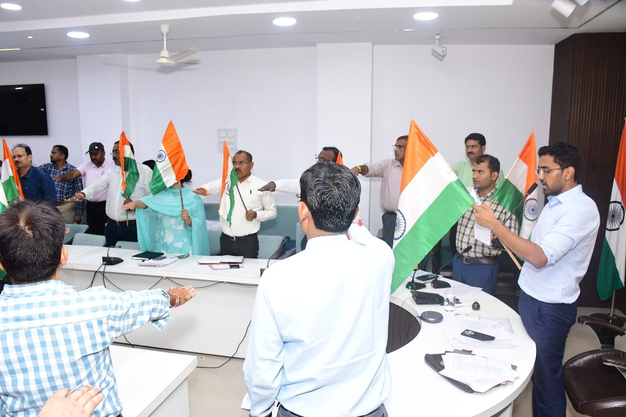 पावनसिटी समाचार पत्र हरदा – कलेक्टर सिद्धार्थ जैन मंगलवार को कलेक्ट्रेट सभाकक्ष में अधिकारियों को गांव व पंचायत को स्वच्छ, सुजल और सतत विकास की ओर अग्रसर करने में सक्रिय भागीदारी निभाने की शपथ दिलाई। इस दौरान सभी अधिकारियों ने शपथ ली कि वे स्वच्छता को अपने स्वभाव और संस्कार का अभिन्न अंग बनायेंगे। हर घर जल कार्यक्रम के तहत बनाई गई परिसम्पत्तियों नल जल कनेक्शन, पम्प हाउस, ओवर हेड टैंक व अन्य बुनियादी ढांचे की रक्षा करेंगे। घर, गांव, शहर और आसपास सूखा कचरा एवं गीला कचरा का सही निष्पादन करेंगे। सिंगल यूज होने वाली प्लास्टिक का इस्तेमाल नहीं करेंगे तथा प्लास्टिक कचरे का समुचित प्रबन्धन करेंगे। स्वच्छता के साथ-साथ पानी को प्रसाद की तरह इस्तेमाल करेंगे और इसका सदुपयोग करके गंदे जल का समुचित निष्पादन