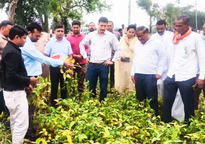 खंडवा कलेक्टर ऋषव गुप्ता ने रविवार को विकासखण्ड पंधाना के ग्रामों में सोयाबीन के खेतों में जाकर सोयाबीन फसल का जायजा लिया। इस दौरान उनके साथ नितेश कुमार यादव, उप संचालक कृषि, पंधाना की एसडीएम सुश्री दिक्षा भागोरे, डॉ सौरभ गुप्ता कृषि वैज्ञानिक तथा राजस्व एवं कृषि विभाग के अन्य अधिकारी भी साथ थे। कलेक्टर गुप्ता एवं अन्य अधिकारियों ने इस दौरान ग्राम रुस्तमपुर, सुल्तानपुर, पाबईकलां, टाकलीकलां, शेखपुरा, रामपुरा, पाचम्बा आदि ग्रामो में फसलों में हुई क्षति का जायजा लिया और कृषक बंधुओ से विस्तृत चर्चा की गयी। कृषि विभाग के अधिकारियों और कृषि वैज्ञानिकों ने किसानों को सोयाबीन फसल की नवीन किस्मों का उपयोग करने, संतुलित उर्वरक उपयोग करने, समय पर कीट व्याधि प्रबंधन, जैविक खेती के साथ साथ किसान भाइयो को कृषि एवं उद्यानिकी फसलो जैसे अरबी, अदरक, हल्दी आदि फसलो की खेती करने की सलाह दी गयी । कृषि विभाग के अधिकारियों और कृषि वैज्ञानिकों ने सोयाबीन फसल में तना मक्खी, गर्डल बीटल, सफेद मक्खी, तथा रोग जैसे – पीला मौजेक, एन्थ्रेकनोज, आदि से प्रभावित फसलों का निरीक्षण किया। भ्रमण के दौरान कृषि वैज्ञानिक डॉ. सौरभ गुप्ता द्वारा इन कीट व्याधि की रोकथाम के लिए फ्लोनिकेमिड 50 प्रतिशत WG 200 ग्राम प्रति हेक्टेयर या थायोमिथाक्सम + लेम्डासायहेलोथ्रिन 125 मिली प्रति हेक्टेयर या एसिटेमीप्रीड 25%+बायफेथ्रिन 25% WG (250 ग्रा./हे) या एमामेक्टिन