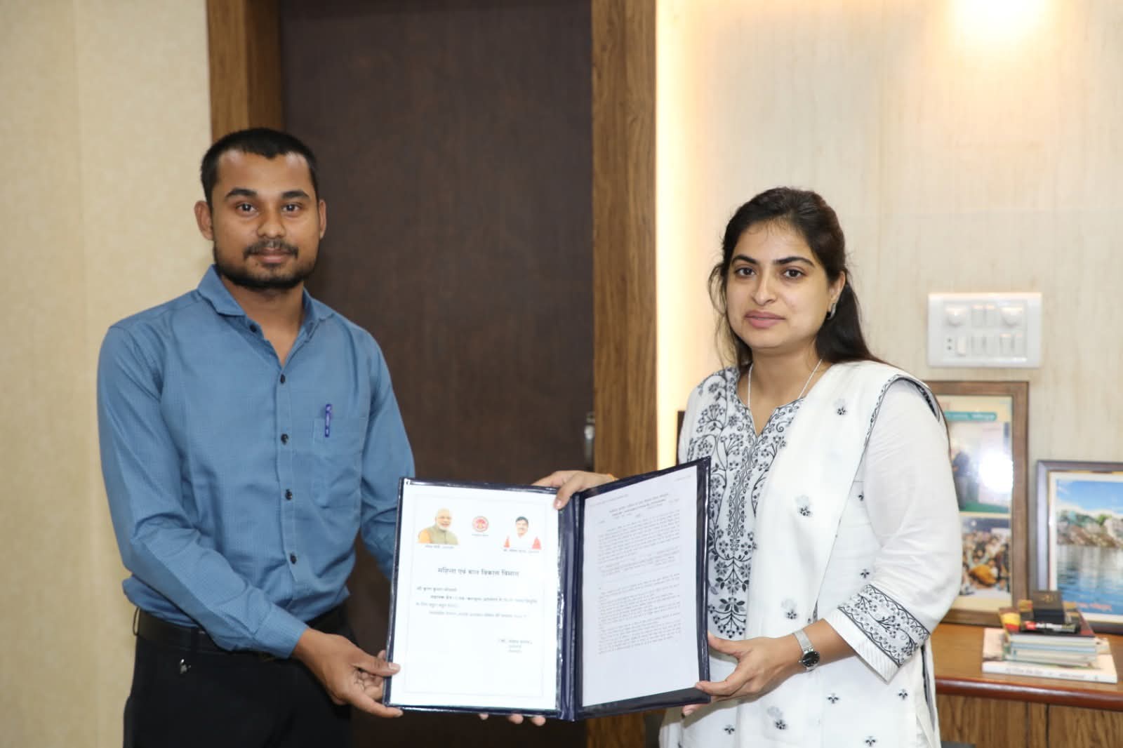 महिला एवं बाल विकास विभाग नर्मदापुरम द्वारा कृष्ण कुमार घोरमारे पिता स्व. खेलचंद घोरमारे की अनुकंपा नियुक्ति सहायक ग्रेड-3 सह कम्यूटर आपरेटर के पद पर कार्यालय परियोजना अधिकारी, महिला एवं बाल विकास परियोजना पिपरिया में की गई। जिसका नियुक्ति आदेश कलेक्टर सुश्री सोनिया मीना द्वारा प्रदाय किया गया।
