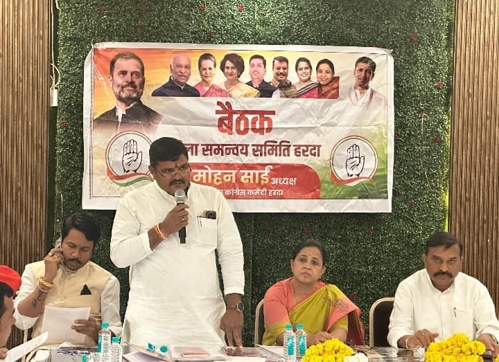 जिला कांग्रेस कमेटी द्वारा जिला प्रभारी श्रीमती रचना जैन जी की के नेतृत्व में समन्वय समिति की एक महत्वपूर्ण बैठक होटल बागवान में आयोजित की गई बैठक में जिला में जिला कार्यकारणी , मंडलम अध्यक्ष एवं पंचायत कमेटी, वार्ड कमेटियों के गठन को लेकर चर्चा की गई जिला प्रभारी श्रीमती रचना जैन जी ने सभी ब्लाक अध्यक्षों को 20 फरवरी तक मंडलम अध्यक्ष सेक्टर अध्यक्ष एवं पंचायत कमेटी एवं वार्ड कमेटियों के गठन का निर्देश दिया गया है साथ ही गांव गांव जा कर किसानों से एवं मजदूर वर्ग के साथियों के साथ मंडलम एवं ग्राम पंचायत में चौपाल चर्चा शुरू कर भाजपा सरकार की किसान विरोधी नीतियों चर्चा कर आगामी समय में जिला स्तर पर आंदोलन की रूप रेखा बनाए ऐसे अन्य अनेक बिंदुओं पर चर्चा की गई बैठक में सभी सदस्यों ने अपने अपने विचार रखे कार्यक्रम के अंत में पुलवामा में हुए आतंकी हमले में शहीद हुए जवानों को दो मिनट का मौन रख कर श्रद्धांजलि अर्पित की आज की बैठक में मुख्य रूप से जिला कांग्रेस अध्यक्ष मोहन साईं हरदा विधायक डॉक्टर रामकिशोर दोगने टिमरनी विधायक अभिजीत शाह राजीव गांधी पंचायती राज संगठन के राष्ट्रीय सलाहकार हेमंत टाले पूर्व जिला पंचायत अध्यक्ष शेर सिंह तोमर पूर्व जिला अध्यक्ष लक्ष्मीनारायण पंवार वरिष्ठ कांग्रेस नेता बद्री पटेल किसान कांग्रेस प्रदेश उपाध्यक्ष दिनेश यादव किसान कांग्रेस प्रदेश महामंत्री रविशंकर शर्मा खिरकिया नगर अध्यक्ष आशुतोष कोठारी विजय सुरमा महिला कांग्रेस जिला अध्यक्ष प्रमिला सिंह ठाकुर ब्लाक अध्यक्ष गोविंद व्यास ब्लाक अध्यक्ष शंकर सोलंकी ब्लाक अध्यक्ष रामदीन पटेल ब्लाक अध्यक्ष विक्रम सिंह चौहान नेता प्रतिपक्ष अमर रोचलानी युवा कांग्रेस जिला अध्यक्ष योगेश चौहान संजय जैन अनिल बिश्नोई रामचरण सिंधे पुरुषोतम कलम प्रेरक सारण सहित अन्य साथी उपस्थित थे