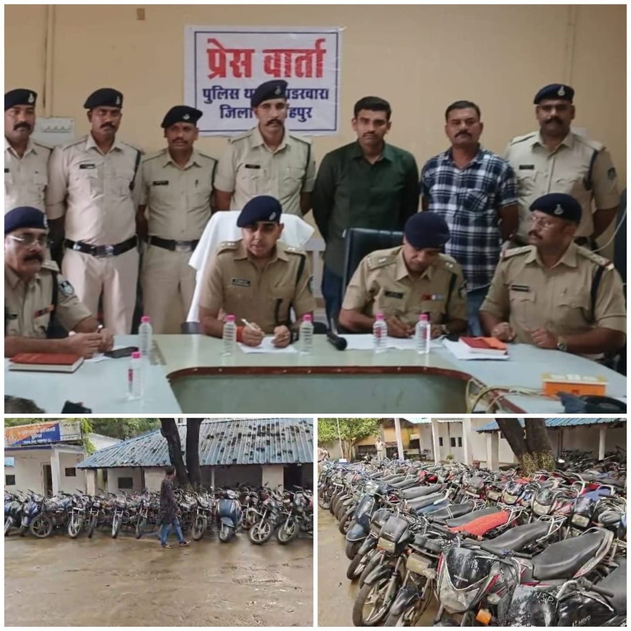 नरसिंहपुर पुलिस ने एक बड़े चोरी गिरोह का पर्दाफाश करते हुए 47 चोरी की मोटरसाइकिलें बरामद की हैं, जिनकी अनुमानित कीमत करीब 40 लाख रुपये बताई जा रही है। ये वाहन नरसिंहपुर सहित प्रदेश के अन्य जिलों से चोरी की गई थीं।
