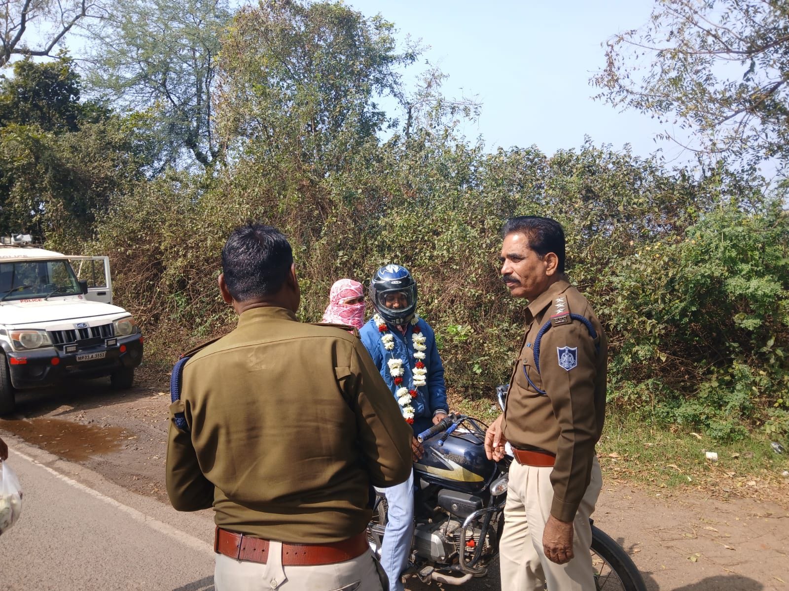 श्रीमान पुलिस अधीक्षक महोदय हरदा श्रीमान अतिरिक्त पुलिस अधीक्षक महोदय हरदा के निर्देशन में, एवं एसडीओपी अनुभाग टिमरनी मार्गदर्शन में थाना प्रभारी महोदय टिमरनी मय थाना स्टाफ के द्वारा आज दिनांक 30/01/26 को सड़क सुरक्षा जागरूकता अभियान के अंतर्गत , ग्राम छिदगांव मेंल में गंजाल नदी के पास स्टापर लगाकर कैमरे के साथ वाहन चेकिंग की गई जिसमें हेलमेट लगाने वाले वाहन चालकों को फूलमाला पहनाकर स्वागत किया गया, यातायात नियमों की जानकारी दी ,राहवीर योजना के बारे में बताया , यातायात नियम पालन करने हेतु समझाइए दी गई ।