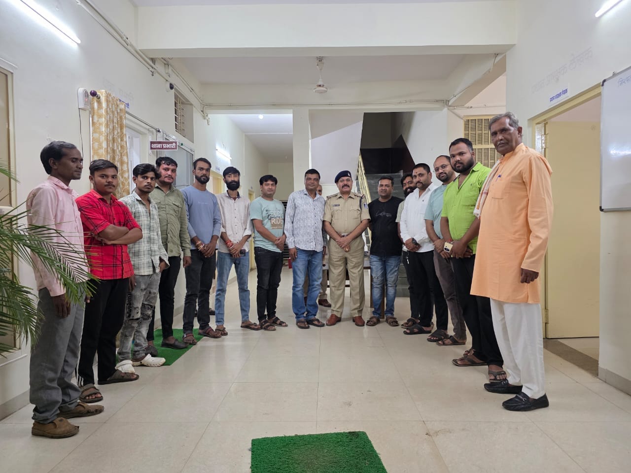 पुलिस अधीक्षक अभिनव चौकसे महोदय हरदा के आदेश के परिपालन में अतिरिक्त पुलिस अधीक्षक महोदय अमित कुमार मिश्रा एवं श्रीमान अनुविभागीय अधिकारी पुलिस रॉबर्ट ग्रेवाल के निर्देशन से थाना परिसर सिराली में गणेश स्थापना उत्सव समिति के आयोजकों की बैठक तथा मिलाद उन नबी के अवसर पर ग्राम दीपगांव में निकलने वाले जूलुस के आयोजकों की पृथक पृथक बैठकें थाना प्रभारी सिराली निरीक्षक रामसुमेर तिवारी व्दारा ली गई बैठक में 35 आयोजक उपस्थित हुए। बैठक में निम्न बिंदुओं पर चर्चा हुई