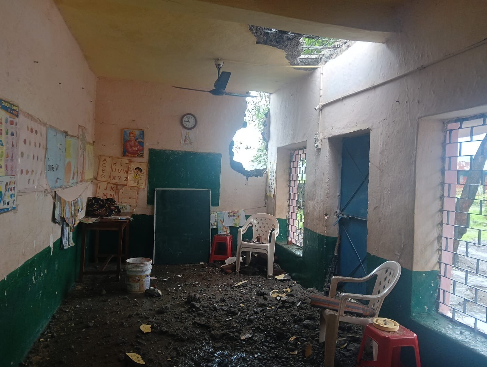 पावनसिटी हरदा -हरदा जिले के विकासखंड खिरकिया की ग्राम पंचायत सॉवारी में स्थित एकीकृत माध्यमिक विद्यालय में सोमवार सुबह 9:00 बजे एक बड़ा हादसा होते-होते टल गया। स्कूल की जर्जर हो चुकी इमारत की छत अचानक भरभराकर गिर गई। सौभाग्यवश उस समय विद्यालय में बच्चे उपस्थित नहीं थे, अन्यथा यह हादसा गंभीर जानमाल की हानि में बदल सकता था। इस घटना ने शिक्षा विभाग की लापरवाही को एक बार फिर उजागर कर दिया है।