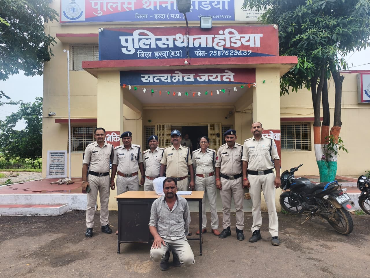 पुलिस अधीक्षक हरदा अभिनव चौकसे द्वारा जिले में अवैध मादक पदार्थों के विरुद्ध सख्त कार्रवाई के निर्देश दिए गए थे। इन निर्देशों के अनुपालन में, अतिरिक्त पुलिस अधीक्षक हरदा के मार्गदर्शन एवं अनुविभागीय अधिकारी हरदा श्रीमती शालिनी परस्ते के नेतृत्व में थाना प्रभारी हँड़िया व उनकी टीम द्वारा एक महत्वपूर्ण कार्रवाई को अंजाम दिया गया। 1 सितंबर को थाना हँड़िया पुलिस द्वारा वाहन चेकिंग अभियान के तहत फोरलेन बायपास ब्रिज के नीचे सर्विस रोड पर संदिग्ध वाहनों एवं व्यक्तियों की चेकिंग की जा रही थी। इसी दौरान एक व्यक्ति ग्राम बागरूल की ओर से पैदल आता दिखाई दिया, जो पुलिस को देखकर अचानक पीछे मुड़कर भागने लगा। पुलिस टीम ने तत्परता से कार्रवाई करते हुए उक्त व्यक्ति को पकड़ लिया। पूछताछ में उसने अपना नाम रामदीन पिता कानसिंह राठौर (बंजारा), उम्र 45 वर्ष, निवासी ग्राम सेमरुड, थाना हरसूद, जिला खंडवा बताया। उसके पास रखे लाल-सफेद रंग के झोले की तलाशी लेने पर पारदर्शी पन्नी में रखा हल्के भूरे रंग का पदार्थ मिला, जो प्रथम दृष्टया गांजा प्रतीत हुआ। साक्षियों की उपस्थिति में मादक पदार्थ की पहचान सुंघकर, जलाकर एवं पूर्व अनुभव के आधार पर की गई। तत्काल विवेचना किट एवं इलेक्ट्रॉनिक तराजू मंगवाकर झोले सहित गांजे का वजन किया गया, जो कुल 2 किलो 100 ग्राम पाया गया। अनुमानित बाजार मूल्य ₹22,000/- आँका गया। आरोपी रामदीन को धारा 8/20 एनडीपीएस एक्ट के तहत गिरफ्तार कर थाना लाया उसके विरुद्ध अपराध क्रमांक 272/2025 पंजीबद्ध कर विवेचना में लिया गया है। आरोपी को विधिक प्रक्रिया के तहत न्यायालय में पेश किया गया, जहाँ से उसे न्यायिक अभिरक्षा में भेजा गया।