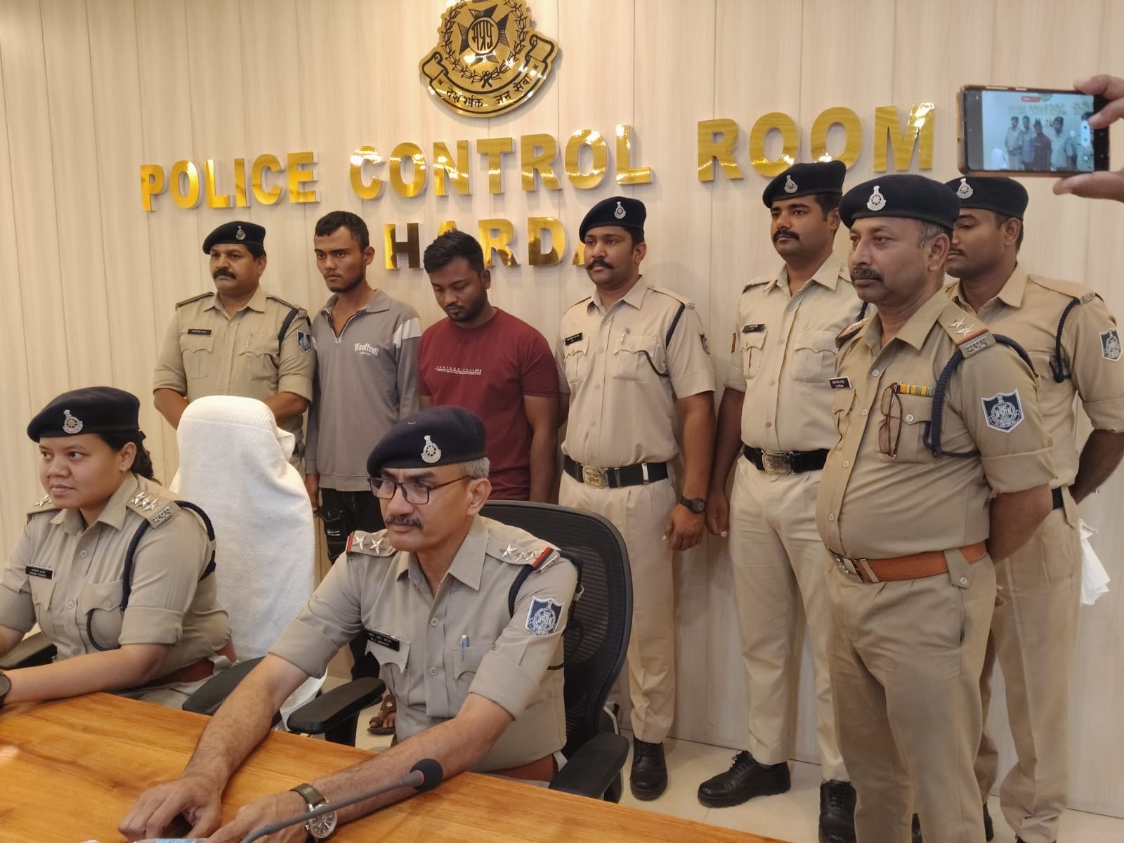 हरदा पुलिस कोतवाली को मिली बड़ी सफलता चार मोबाइल एवं पल्सर मोटरसाइकिल सहित दो आरोपियों को 24 घंटे में गिरफ्तार किया गया मामला हरदा कोतवाली थाने क्षेत्र के अंतर्गत आता है फरियादी अखिलेश कडोले एवं सुभान खान द्वारा थाना कोतवाली में उपस्थित होकर रिपोर्ट दर्ज कराई थी की शाम के करीब 6:45 बजे घर जाते समय मोबाइल पर बात करते हुए अज्ञात मोटरसाइकिल सवार बदमाशों ने उनके मोबाइल फोन को झपट लिया इसी प्रकार इंडस्ट्री एरिया में लोकेश सुतार का वीवो कंपनी का मोबाइल एवं छिपानेर रोड के सामने कलारी के पास से मोबाइल झपटकर ले गए हरदा के बघेल हॉस्पिटल के पास से निकुंज पाटिल का एप्पल कंपनी का मोबाइल भी झपटकर ले गए टोटल चार मोबाइल फोन पुलिस ने उनकी आरोपियों के पास से जप्त किया जिनकी अनुमानित कीमत लगभग 112000 है जो आरोपियों के पास से बरामद किए गए प्रकरण थाना कोतवाली हरदा में अपराध क्रमांक 217 / 26 एवं 218 / 26 से धारा 304(2) बीएनएस के तहत प्रकरण पंजीकृत कर विवेचना में लिया गया उक्त घटना को गंभीरता को देखते हुए पुलिस अधीक्षक हरदा अतिरिक्त पुलिस अधीक्षक एवं एसडीओपी शालिनी परस्ते के मार्गदर्शन में थाना प्रभारी सोहनलाल भारती कोतवाली के निर्देश में दो विशेष टीम का गठन किया गया टीम द्वारा घटनास्थल के आसपास से लगभग 80 से 100 सीसी टीवी कैमरे फुटेज खगाले गए एवं तकनीकी साक्षयो के आधार पर आरोपियों की पहचान की गई पुलिस ने आज दिनांक 9 अप्रैल को रात्रि में दोनों आरोपियों को गिरफ्तार किया गया जिनके नाम मोहम्मद नदीम पिता नईम खान उम्र 22 वर्ष निवासी देव कॉलोनी हरदा, मोहम्मद मुस्तफा पिता मोहम्मद तसलीम उम्र 26 वर्ष निवासी कोषद सूरत गुजरात को गिरफ्तार कर कब्जे से छीने गए चारों मोबाइल फोन तथा वारदात में प्रयुक्त एक बिना नंबर की काली पल्सर मोटरसाइकिल जप्त की गई यह दोनों आरोपी साले बहनोई है इसमें इसके साले मोहम्मद मुस्तफा पर गुजरात में भी कई मामले दर्ज हैं हरदा में इनका यह पहला मामला दर्ज किया गया है पुलिस के शहर ने कार्रवाई में सराहनीय कार्रवाई में ए एस आई सोहन सिंह एएसआई जितेंद्र राजपूत ए एस आई संजय ठाकुर हाईएस्ट कांस्टेबल करण साहू आरक्षक प्रदीप मालवीय आरक्षक वीरेंद्र सिंह राजपूत आरक्षक सजन राजपूत और कमलेश परिहार एवं आरक्षक शैलेंद्र की महत्वपूर्ण भूमिका रही