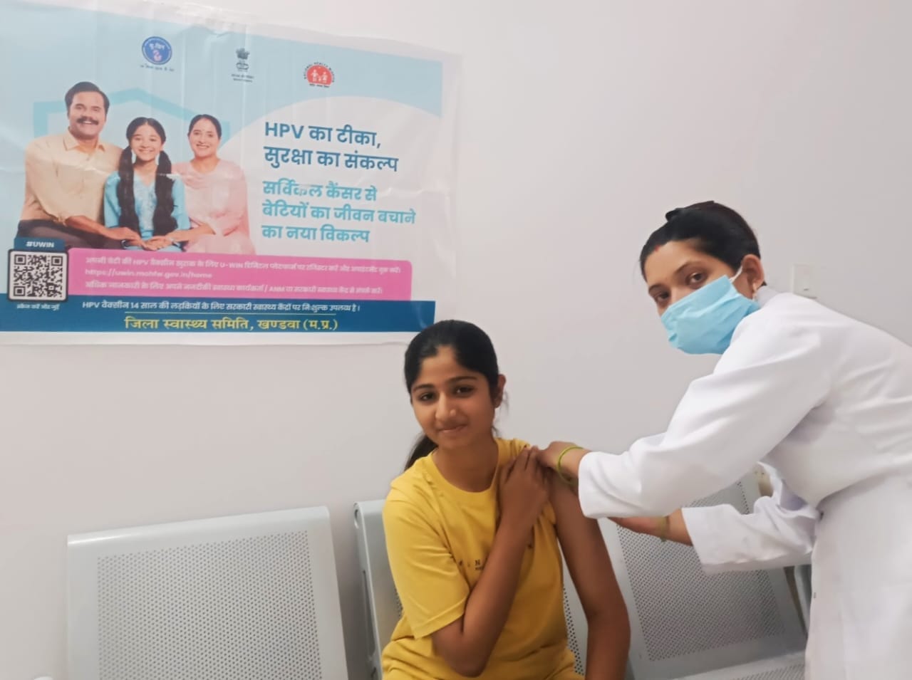 खण्डवा- सर्वाइकल कैंसर से बचाव के लिए श्री दादाजी धूनीवाले जिला चिकित्सालय खंडवा में एच.पी.वी. अर्थात “ह्यूमन पैपिलोमा वायरस” से बचाव के लिए टीके लगाए जा रहे हैं। सिविल सर्जन डॉ. अनिरुद्ध कौशल ने बताया कि एच.पी.वी. टीकाकरण अभियान के तहत 14 से 15 वर्ष आयु वर्ग की किशोरी बालिकाओं को यह टीके लगाए जा रहे हैं। उन्होंने सभी पालकों से अपील की है कि अपनी बेटियों के सुरक्षित भविष्य के लिए श्री दादाजी धूनीवाले जिला चिकित्सालय के ए ब्लॉक के प्रथम तल पर आकर टीका अवश्य लगवाएं। यह टीका भविष्य में होने वाले सर्वाइकल कैंसर के खतरे को 90 प्रतिशत तक कम कर देता है।