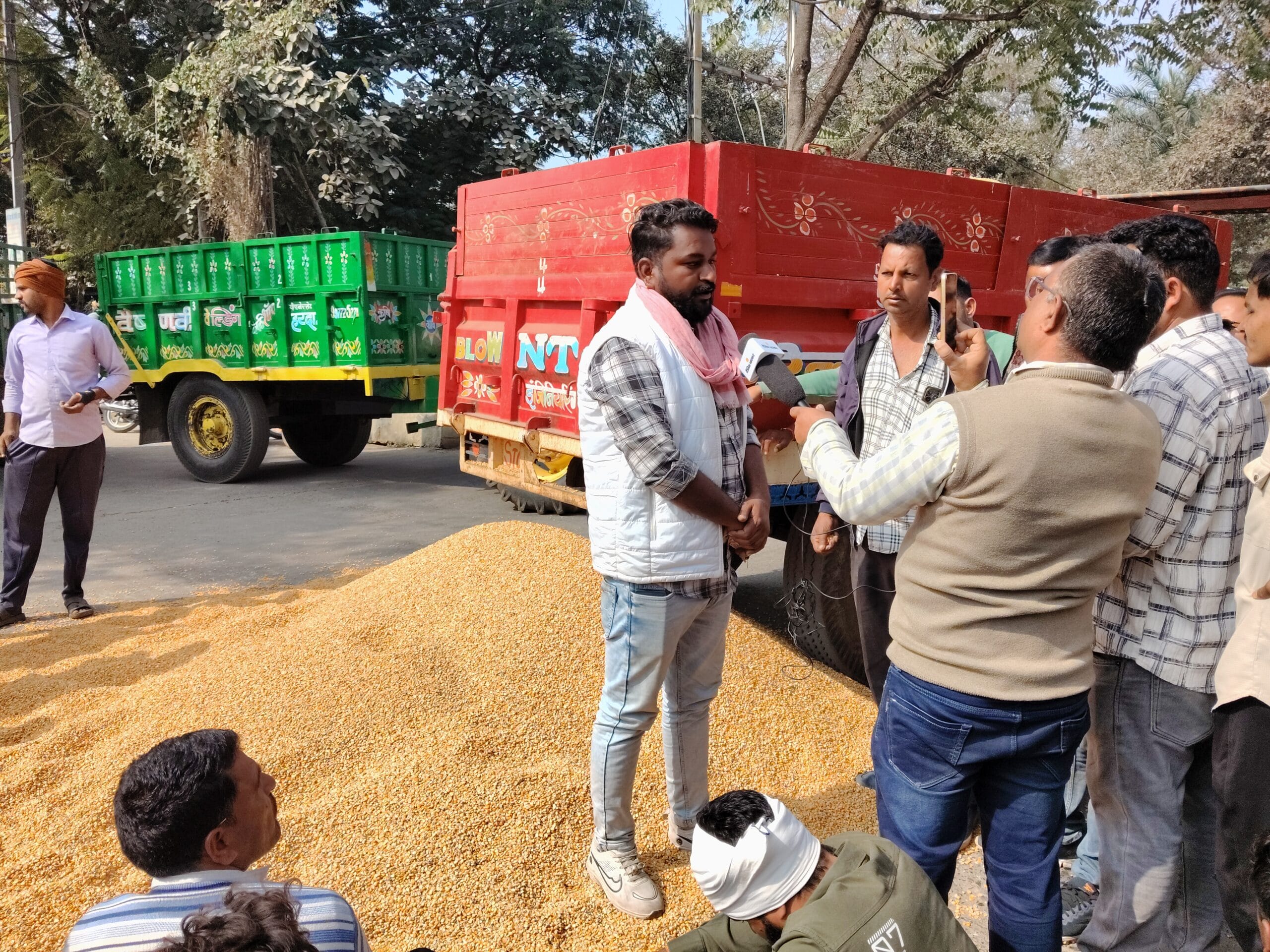 मध्य प्रदेश के हरदा जिले में मक्का के भाव सही नहीं मिलने पर किस ने मक्का के ट्राली को रोड पर खाली किया मंडी में चक्का जाम किया गया किसान का कहना है कि उसकी मक्का के ट्राली को व्यापारी ने ₹1253/ भाव में खरीदी की बोली लगाई थी जो वर्तमान रेट से बहुत काम में खरीदा था कि अनुचित है मक्का का भाव ₹1700/ कुंटल के भाव से बिक रहा है मगर हरदा के व्यापारियों के द्वारा किसानों से तीन से चार दिन में व्यापारी द्वारा मक्का की ट्रालियों की बोली लगाई जाती है कम बोली लगाने से किसान मक्का नहीं देता है तो व्यापारी वहां से चले जाते हैं व्यापारी खरीदी नहीं करते किसानों ने जिला प्रशासन के खिलाफ नारेबाजी की और कहा कि हम अपने हक मांगते हैं प्रशासन इस मामले मैान है जब मंडी सचिव से चर्चा की गई तो उन्होंने कहा कि व्यापारी द्वारा मक्का तो खरीदी गई थी लेकिन मक्का में कुछ फंक्शंस होने के कारण कम भाव में ट्राली बिकी थी अब देखना है कि किसानों के चक्कर जाम पर जिला प्रशासन क्या एक्शन कर लेता है अभी तो बाढ़ किसानों के द्वारा खाली गई की गई मक्का की ट्राली के चारों ओर बैठकर चक्का जाम किया गया है और जिला प्रशासन के खिलाफ नारेबाजी की जा रही है जिसके सामने मक्का के ट्राली खाली की यह उसने का कहना है कि उसको मक्का का उचित दाम नहीं मिलता है तो वह धरने पर बैठे रहेंगे या फिर मक्का को ऐसे छोड़कर घर चले जाएगा व्यापारियों से नाराज किसानों ने मंडी परिसर के में रोड पर नारेबाजी कर रहे हैं रोड बंद कर दिया गया है अब देखना है कि किसानों के हित में जिला प्रशासन क्या कार्रवाई करता है या किस के मक्का को रोड पर पड़े छोड़ने पर मजबूर होकर जाना पड़ेगा
