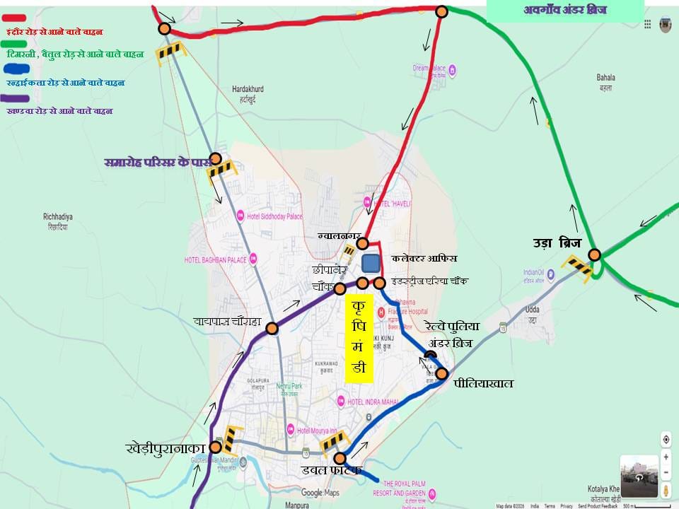 उक्त अवधि के दौरान इन मार्गों पर यातायात का अतिरिक्त दबाव रहेगा। अतः यातायात पुलिस हरदा द्वारा आमजन से अपील की जाती है कि—