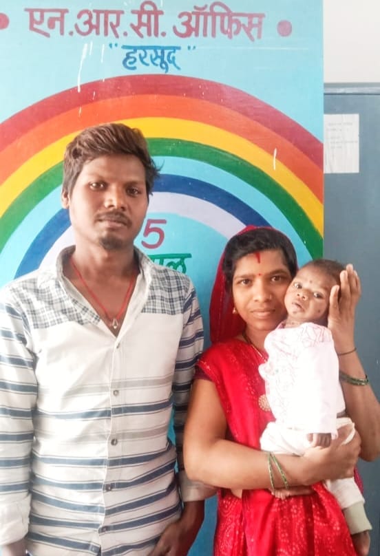 खण्डवा -हरसूद विकासखण्ड के ग्राम देवलामाफी निवासी श्री महेश व उनकी पत्नी मनीषा का 5 माह का पुत्र मयंक हिर्शस्प्रंग रोग से ग्रसित था। जिस कारण जन्म से ही बच्चे की बड़ी आंत के निचले हिस्से में तंत्रिका कोशिकाएं नहीं होने से मल त्याग में गंभीर रूकावट आती थी। आयुष्मान भारत योजना के तहत इसी वर्ष जनवरी माह में मयंक का ऑपरेशन इंदौर के महात्मा गाँधी मेमोरियल सुपर स्पेशलिटी हॉस्पिटल मे हुआ। सर्जरी के बाद मयंक का वजन कम हो गया। जिस पर गांव की आंगनवाड़ी कार्यकर्ता ने मयंक को पोषण पुनर्वास केंद्र हरसूद में भर्ती करने की सलाह उसके पिता महेश को दी। मयंक को 2 फरवरी 2026 को पोषण पुनर्वास केंद्र हरसूद में भर्ती किया गया, जहाँ शिशु रोग विशेषज्ञ डॉ. गगन दिलावरे ने उसकी स्वास्थ्य जांच कर उपचार शुरू किया। एनआरसी में भर्ती के समय मयंक का वजन 3.820 किग्रा और ऊँचाई 61 से.मी. थी। जो कुपोषण की बेहद गंभीर दशा को दर्शाती है।