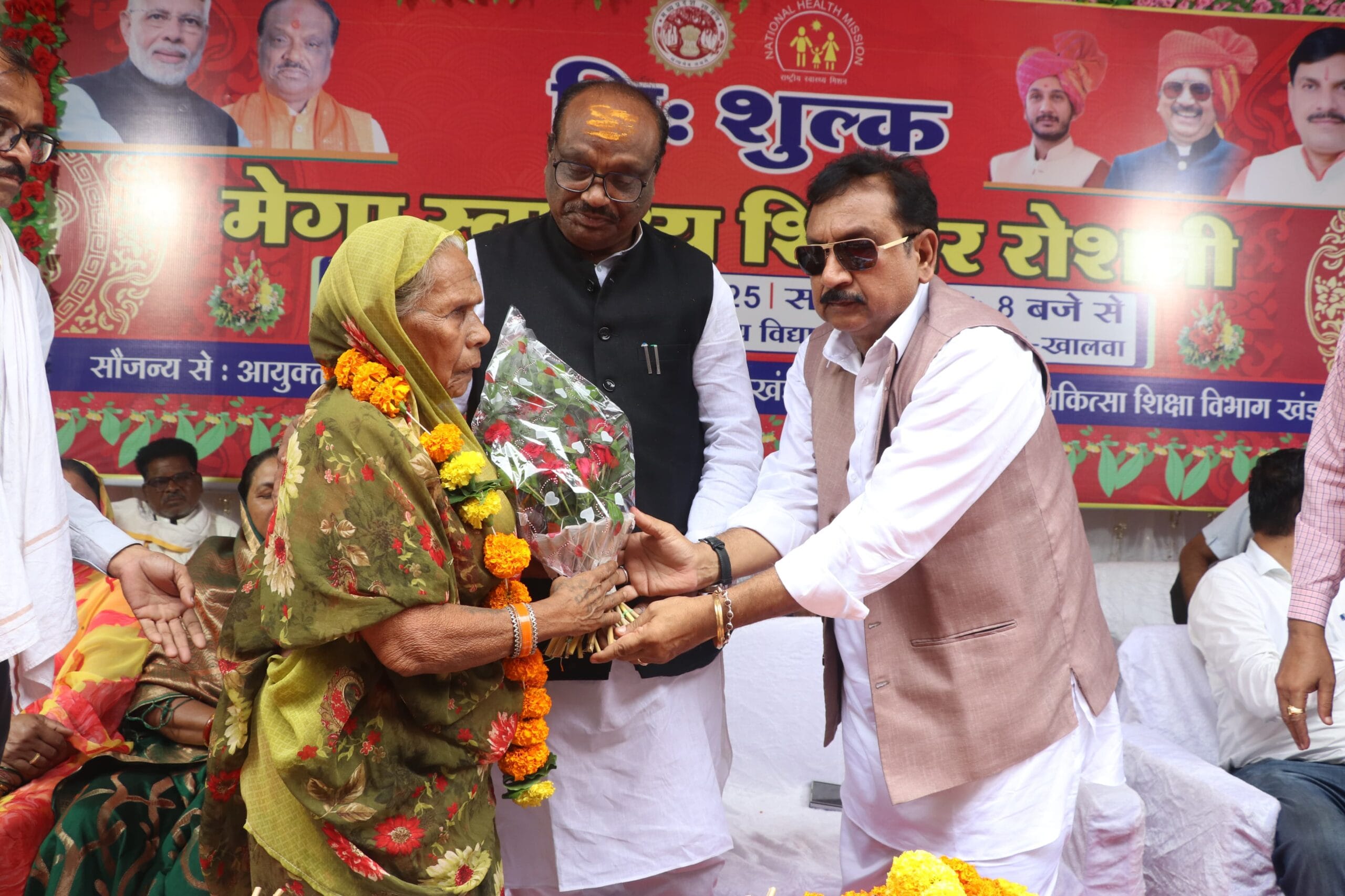 मध्य प्रदेश के खंडवा जिले के खालवा विकासखंड के ग्राम रोशनी में आयोजित मेगा स्वास्थ्य शिविर का शुभारंभ भारत सरकार के जनजातीय कार्य विभाग के राज्य मंत्री डीडी उइके और मध्यप्रदेश के जनजातीय कार्य विभाग के मंत्री कुंवर विजय शाह ने दीप प्रज्वलित कर, और मां सरस्वती के चित्र पर माल्यार्पण कर किया। इस अवसर पर केंद्रीय मंत्री उईके ने संबोधित करते हुए कहा कि प्रधानमंत्री नरेंद्र मोदी द्वारा प्रारंभ की गई आयुष्मान भारत योजना देश के करोड़ों गरीब परिवारों के लिए वरदान सिद्ध हो रही है। उन्होंने कहा कि गरीब से गरीब व्यक्ति भी आयुष्मान भारत योजना के तहत बड़े-बड़े शहरों के जाने माने प्राइवेट अस्पतालों में अपने आयुष्मान कार्ड की मदद से एक साल में 5 लाख रुपए तक का उपचार निशुल्क करवा सकता है। इस अवसर पर कलेक्टर ऋषव गुप्ता, जिला पंचायत के सीईओ डॉक्टर नागार्जुन बी गौड़ा , मुख्य चिकित्सा अधिकारी डॉक्टर ओ पी जुगतावत, जिला पंचायत सदस्य श्रीमती प्रमिला सिलारे और श्रीमती जमुना बाई, खालवा की जनपद अध्यक्ष, उपाध्यक्ष और हरसूद के एसडीएम रमेश खतेड़िया और अन्य अधिकारी भी मौजूद थे।