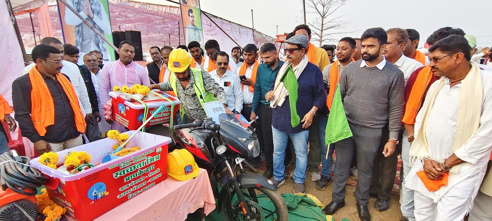 खंडवा-, प्रदेश के जनजातीय कार्य विभाग के मंत्री. कुंवर विजय शाह ने शुक्रवार को खालवा विकासखंड के ग्राम रोशनी में आयोजित कार्यक्रम में “स्वच्छता मित्र आपके द्वार” योजना के तहत कुल 4 दोपहिया स्वच्छता वाहनों को हरी झंडी दिखाकर रवाना किया। इस अवसर पर जिला पंचायत के मुख्य कार्यपालन अधिकारी डॉक्टर नागार्जुन गौड़ा सहित अन्य जनप्रतिनिधि एवं अधिकारी भी मौजूद थे। ग्राम खारकला, रोशनी, खालवा एवं आशापुर के स्वच्छता मित्रों के वाहनों को इस अवसर पर रवाना किया गया।
