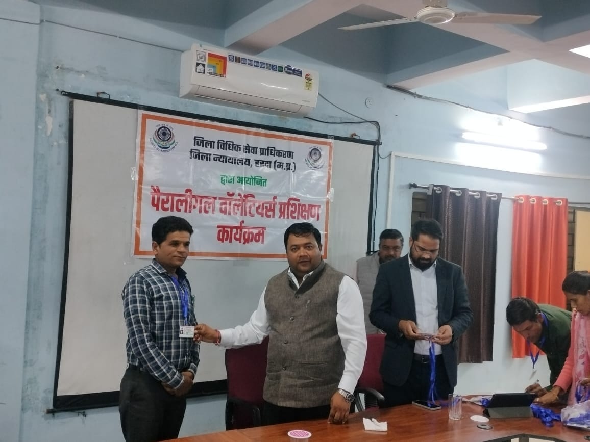 म.प्र. राज्य विधिक सेवा प्राधिकरण जबलपुर के निर्देशन एवं माननीय प्रधान जिला एवं सत्र न्यायाधीश/अध्यक्ष अरविंद रघुवंशी के निर्देशन में दिनांक 13.01.2026 को जिला विधिक सेवा प्राधिकरण न्यायालय हरदा में पी. एल. व्ही. रिफ्रेशर ट्रेनिंग कार्यक्रम आयोजित किया गया।