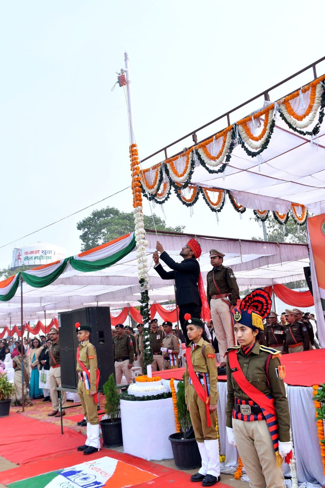 आज आयोजित गणतंत्र दिवस समारोह में आकर्षक परेड का नेतृत्व रक्षित निरीक्षक सुश्री रजनी सिंह गुर्जर ने किया। परेड में विशेष सशस्त्र बल, जिला पुलिस बल, जिला होमगार्ड, एनसीसी दल बालक महात्मा गांधी शासकीय उच्चतर माध्यमिक विद्यालय, एनसीसी दल बालिका शासकीय कन्या उच्चतर माध्यमिक विद्यालय, एनसीसी दल बालक सनफ्लॉवर हायर सेकण्ड्री स्कूल, एनसीसी बालक होलीफेथ स्कूल, शासकीय उत्कृष्ट विद्यालय हरदा व महात्मा गांधी शासकीय उच्चतर माध्यमिक विद्यालय का स्काउट गाइड दल, शासकीय कन्या उच्चतर माध्यमिक विद्यालय हरदा का गाइड दल व रेडक्रास दल, शौर्य दल व पुलिस बैण्ड ग्रुप भी शामिल हुआ। परेड में सीनियर दल में जिला होमगार्ड दल ने प्रथम, जिला पुलिस बल ने द्वितीय व विशेष सशस्त्र बल ने तृतीय स्थान प्राप्त किया। इसी प्रकार जूनियर दल में एन.सी.सी. बालिका शासकीय कन्या उच्चतर माध्यमिक विद्यालय हरदा ने प्रथम, एन.सी.सी. बालक महात्मा गांधी शासकीय उच्चतर माध्यमिक विद्यालय ने द्वितीय तथा एनसीसी बालक सनफ्लॉवर हायर सेकण्ड्री स्कूल के स्काउट दल ने तृतीय स्थान प्राप्त किया।