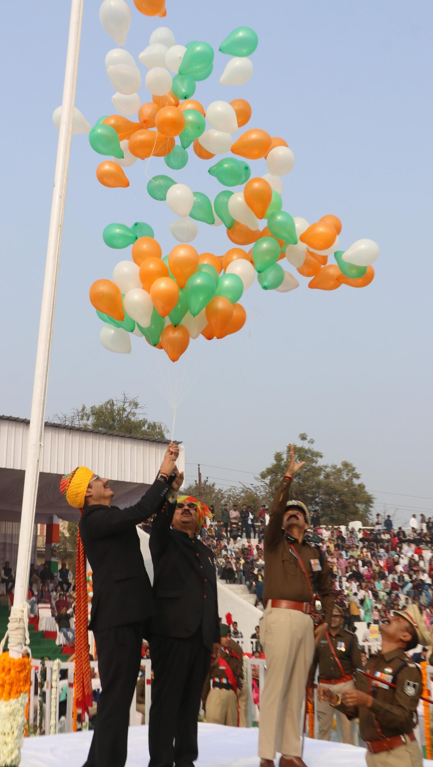 खण्डवा – प्रदेश के जनजातीय कार्य विभाग के मंत्री कुंवर विजय शाह ने गणतंत्र दिवस के अवसर पर खंडवा के स्टेडियम ग्राउंड पर आयोजित जिला स्तरीय कार्यक्रम में झंडा वंदन किया। उन्होंने इस अवसर पर मुख्यमंत्री डॉ. मोहन यादव के संदेश का वाचन कर परेड की सलामी ली। मंत्री डॉ. शाह ने इस दौरान रंग बिरंगे गुब्बारे छोड़े और लोकतंत्र सेनानियों का शॉल व श्रीफल प्रदान कर सम्मान किया। इस अवसर पर स्कूली विद्यार्थियों ने रंगारंग सांस्कृतिक कार्यक्रम प्रस्तुत किये। विभिन्न विभागों द्वारा अपनी अपनी योजनाओं पर केन्द्रित झांकियों का प्रदर्शन भी इस अवसर पर किया गया। कार्यक्रम के अंत में उत्कृष्ट कार्यों के लिए अधिकारी कर्मचारियों को सम्मानित किया गया।