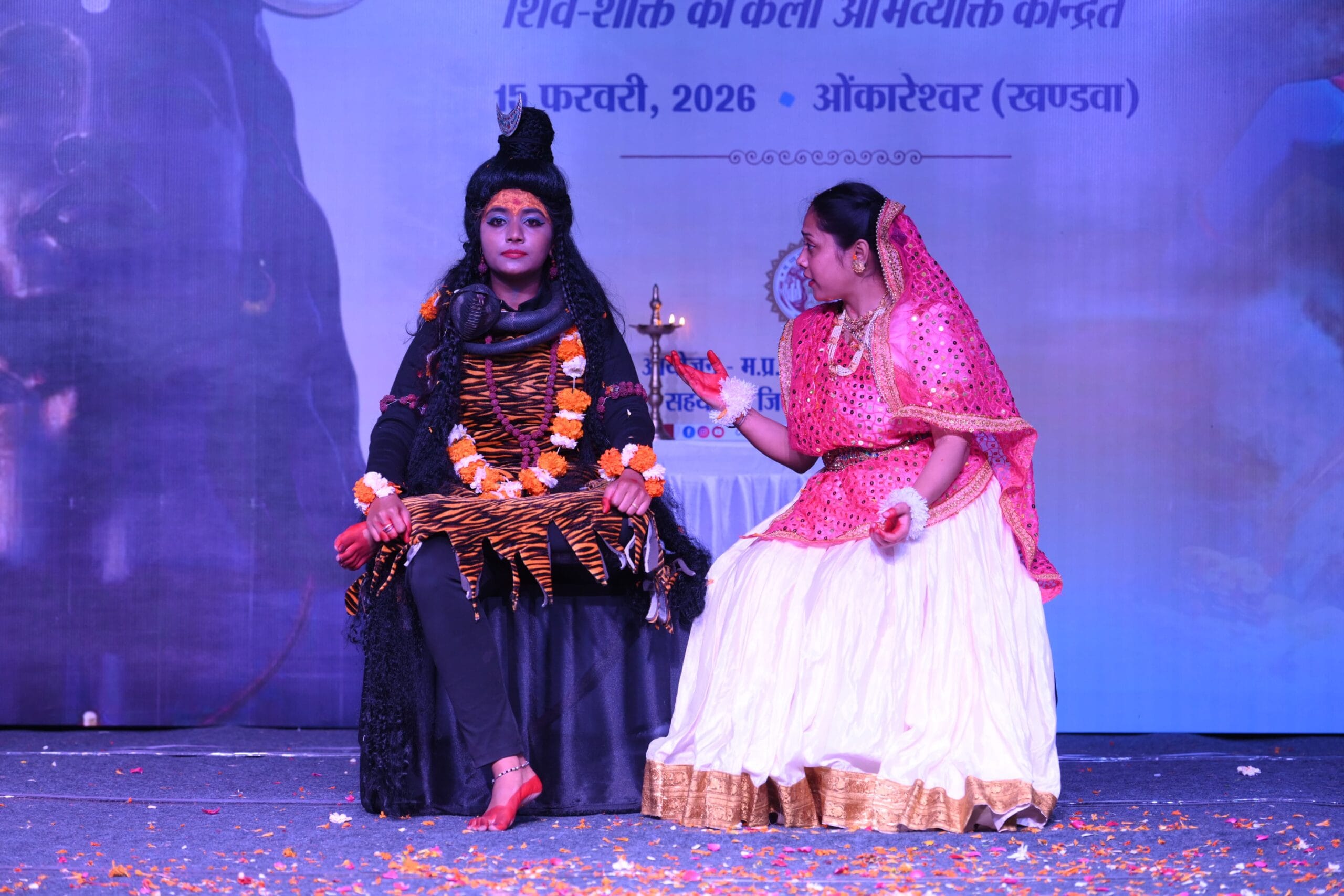 खंडवा – महाशिवरात्रि के पावन अवसर पर संस्कृति विभाग, मध्यप्रदेश शासन द्वारा शिव-साधना और कला-सौंदर्य के दिव्य संगम के रूप में ओंकारेश्वर के नागरघाट पर एक दिवसीय “महादेव महोत्सव” का आयोजन किया गया। समारोह में शिव केंद्रित नृत्य नाटिका, लोक गायन एवं भक्ति गायन की प्रस्तुतियाँ संयोजित की गईं। महादेव के प्रेम से आह्लादित प्रस्तुति ने शिव भक्ति, लोक परम्परा और शास्त्रीय-सुगम कलाओं के सुरम्य त्रिवेणी के रूप में श्रद्धा और भक्ति की एक अनुपम आध्यात्मिक एकत्व को रचा। यह आयोजन जिला प्रशासन, खंडवा के सहयोग से आयोजित किया गया।