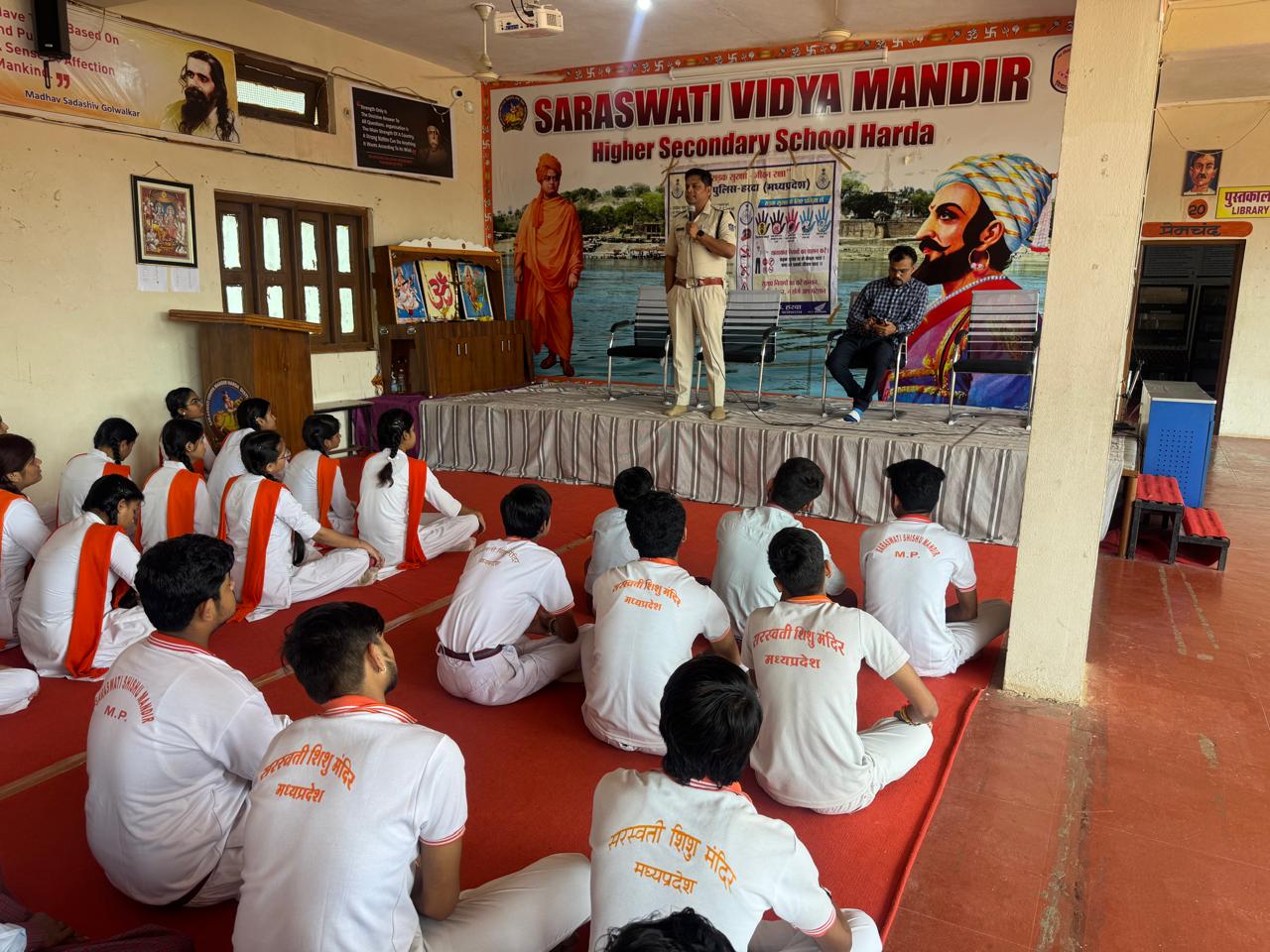 मध्य प्रदेश के हरदा जिले में यातायात नियमों की जानकारी सरस्वती शिशु मंदिर स्कूल के 120 छात्र छात्राओं को यातायात नियमों से अवगत कराया