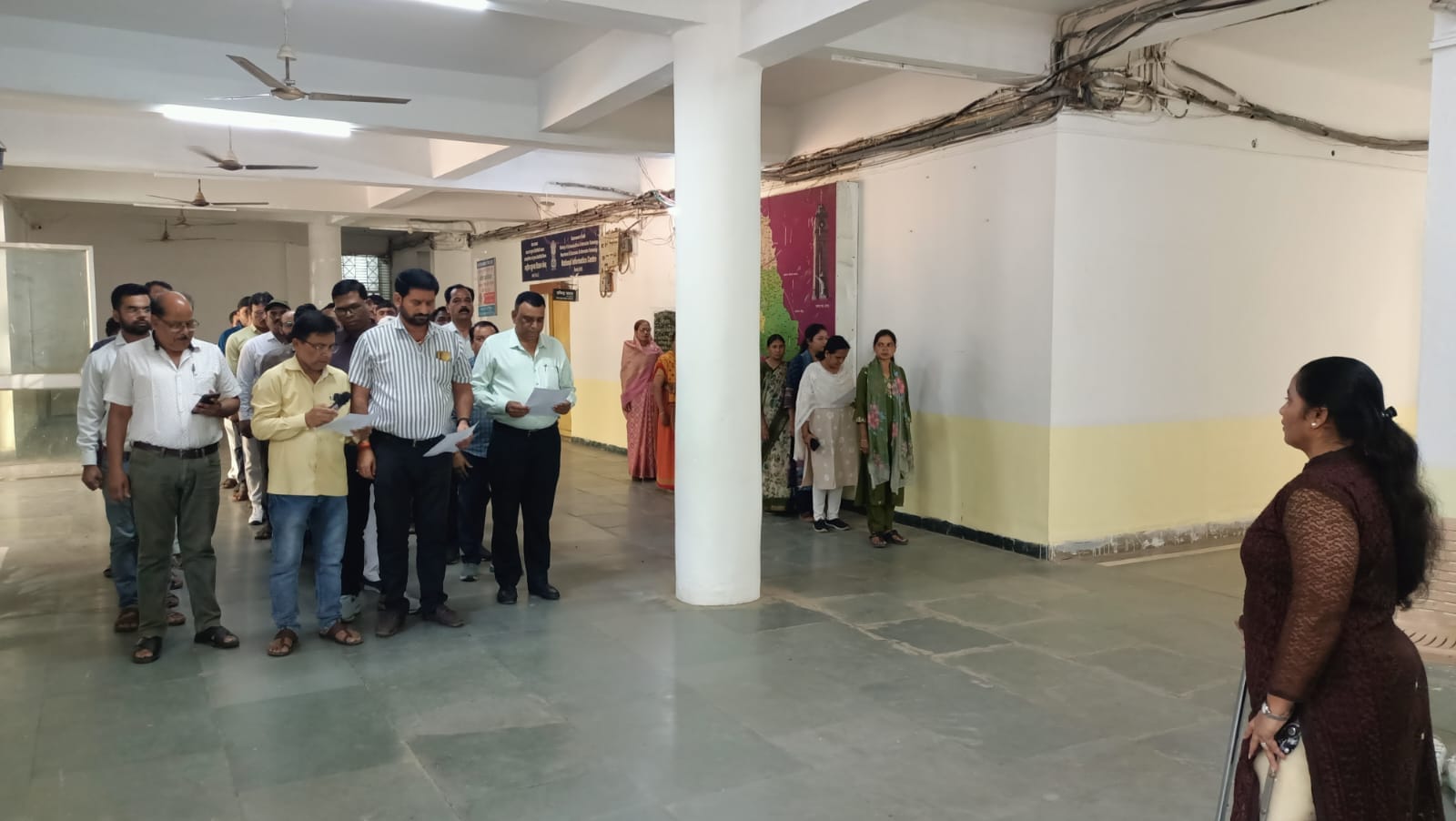 हरदा- प्रत्येक माह के पहले कार्य दिवस की शुरूआत शासकीय कार्यालयों में राष्ट्रगीत ‘‘वंदेमातरम्’’ गायन के साथ होती है। इसी क्रम में बुधवार सुबह कलेक्ट्रेट परिसर में स्थित कार्यालयों के अधिकारी कर्मचारियों ने राष्ट्रगीत “वंदे-मातरम“ एवं राष्ट्रगान “जन-गण-मन“ का सामूहिक गायन किया। इस अवसर पर संयुक्त कलेक्टर सुश्री रजनी वर्मा सहित अन्य अधिकारी कर्मचारी भी मौजूद थे।