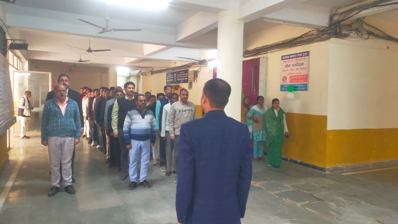 हरदा – प्रत्येक माह के पहले कार्य दिवस की शुरूआत शासकीय कार्यालयों में राष्ट्रगीत ‘‘वंदेमातरम्’’ गायन के साथ होती है। इसी क्रम में सोमवार सुबह कलेक्ट्रेट परिसर में स्थित कार्यालयों के अधिकारी कर्मचारियों ने राष्ट्रगीत व राष्ट्रगान का गायन किया। इस अवसर पर संयुक्त कलेक्टर श्री सतीश राय सहित अन्य अधिकारी कर्मचारी भी मौजूद थे।‘
