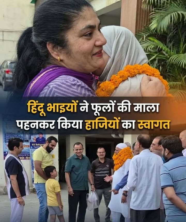 गाजियाबाद से एक बहुत ही खूबसूरत और दिल छू लेने वाली तस्वीर सामने आई है। जब मुसलमान हज के लिए रवाना होने लगे, तो हिंदू समाज के लोग उन्हें विदा करने के लिए फूलों की मालाएं लेकर खड़े हो गए। यह नज़ारा आपसी प्यार, सम्मान और भाईचारे का बेहतरीन उदाहरण है।
