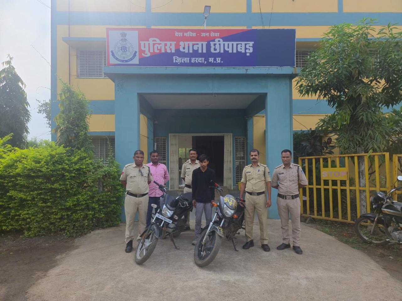मध्य प्रदेश के हरदा जिले के थाना छीपाबड में फरियादी संतोष पिता चंपालाल राठौर उम्र 47 साल निवासी ग्राम नीमसराय द्वारा रिपोर्ट किया कि फरियादी के घर के सामने से कोई अज्ञात आरोपी द्वारा फरियादी की होण्डा कंपनी की ड्रीम नियो ग्रे कलर की मोटर सायकल क्र. एम.पी. 47 एमई 8634 कीमती 80,000 रूपये चोरी करके ले गया है एवं दिनांक 28.10.25 को फरियादी रामसिंह पिता चंदन कोरकू उम्र 55 साल निवासी ग्राम बारानाला तहसिराली थाना सिराली जिला हरदा हाल ग्राम बडनगर द्वारा थाना हाजिर आकर रिपोर्ट किया कि पवन विष्नोई के घर के बाहर ग्राम बडनगर से कोई अज्ञात आरोपी द्वारा फरियादी की टी.व्ही.एस. प्लेटिना कंपनी की मोटर सायकल क्र. एम.पी. 47 जेडबी 2942 कीमती 85,000 रूपये चोरी करके ले गया है।
