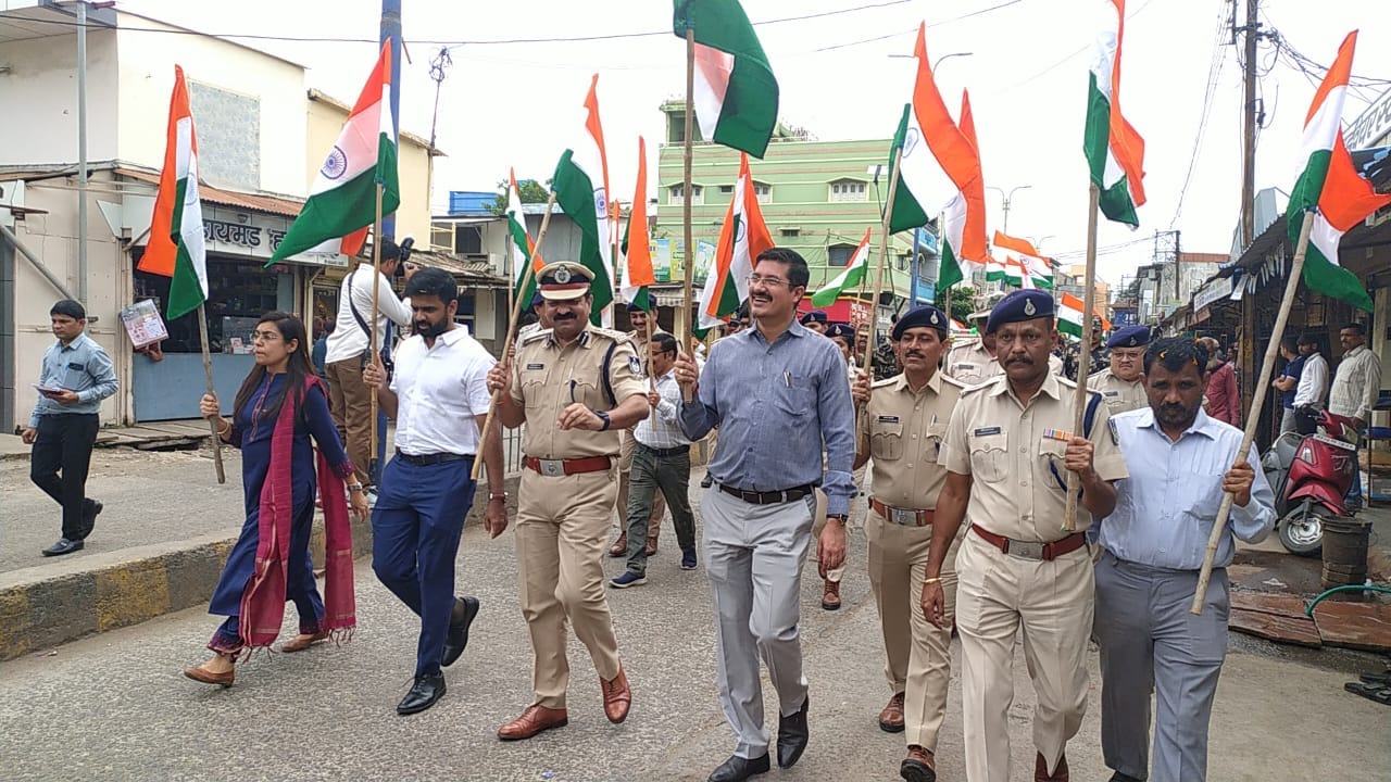 पावनसिटी खंडवा – मध्य प्रदेश के खंडवा जिले में हर घर तिंरगा, हर घर स्वच्छता अभियान के तहत बुधवार को पुलिस कंट्रोल रूम से तिरंगा रैली रवाना हुई। रैली में कलेक्टर ऋषव गुप्ता, पुलिस अधीक्षक मनोज कुमार राय, जिला पंचायत के सीईओ डॉ. नागार्जुन बी. गौड़ा, अपर कलेक्टर के.आर. बड़ोले, अतिरिक्त पुलिस अधीक्षक महेन्द्र तारणेकर एवं श्री राजेश रघुवंशी, नगर निगम आयुक्त श्रीमति प्रियंका राजावत और एसडीएम खंडवा बजरंग बहादुर सहित पुलिस प्रशासन के अधिकारी कर्मचारी तिरंगा झंडा लेकर बड़ी संख्या में शामिल हुए। रैली में एनसीसी, एसएएफ, होमगार्ड, पुलिस बैंड सहित स्वतंत्रता दिवस की रिहर्सल परेड में शामिल सभी प्लाटून के सदस्य शामिल हुए। यह रैली पुलिस कंट्रोल रूम से रवाना होकर बजरंग चौक, कहारवाड़ी चौक, जलेबी चौक, घंटाघर, केवलराम चौराहा, रेलवे स्टेशन से होते हुए पुलिस कंट्रोल रूम पर आकर सम्पन्न हुई।