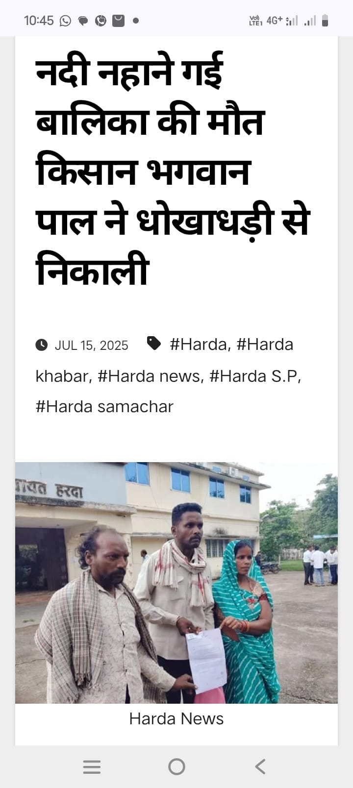 पावनसिटी समाचार के संपादक अशफाक अली के द्वारा पिछले हफ्ते जनसुनवाई में आए फरियादी सुनीता बाई काजल पति कमल सिंह काजल उम्र 41 वर्ष ने जनसुनवाई में आवेदन दिया था कि उसकी बालिका की नदी डूबने से मौत हो गई थी जिस प्रशासन द्वारा उनको चार लाख रुपए का चेक यूको बैंक का दिया गया था जिस खेत मालिक के यहां यह काम करते थे उसे खेत मालिक भगवान दास पाल पाल पिता भागीरथ पाल निवासी महेंद्र गांव तहसील सिराली ने उनके साथ धोखा खड़ी की थी धोखा खड़ी की शिकायत एसपी कार्यालय में भी की थी मगर वहां से उनको मदद ना मिल पाने के कारण उन्होंने जनसुनवाई में भी कलेक्टर के सामने गुहार लगाई थी पवन सिटी समाचार पत्र ने इसे खबर को प्रमुखता से प्रकाशित की थी खबर का असर आज हरदा सिविल थाने में धोखाधड़ी का मामला आज दर्ज कर लिया गया है जल्द ही धोखा धड़ी करने वाले भगवान दास पाल पिता भागीरथ पाल महेंद्र गांव तहसील सिराली के विरुद्ध आज मामला दर्ज कर लिया गया जल्द ही कार्रवाई की जाएगी