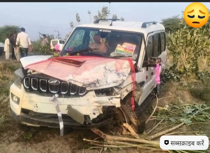 भणियाणा में बारातियों और पर्यटकों के वाहन भिड़े, 4 घायल, पेड़ से टकराए दोनों वाहन, घायलों को जोधपुर रेफर