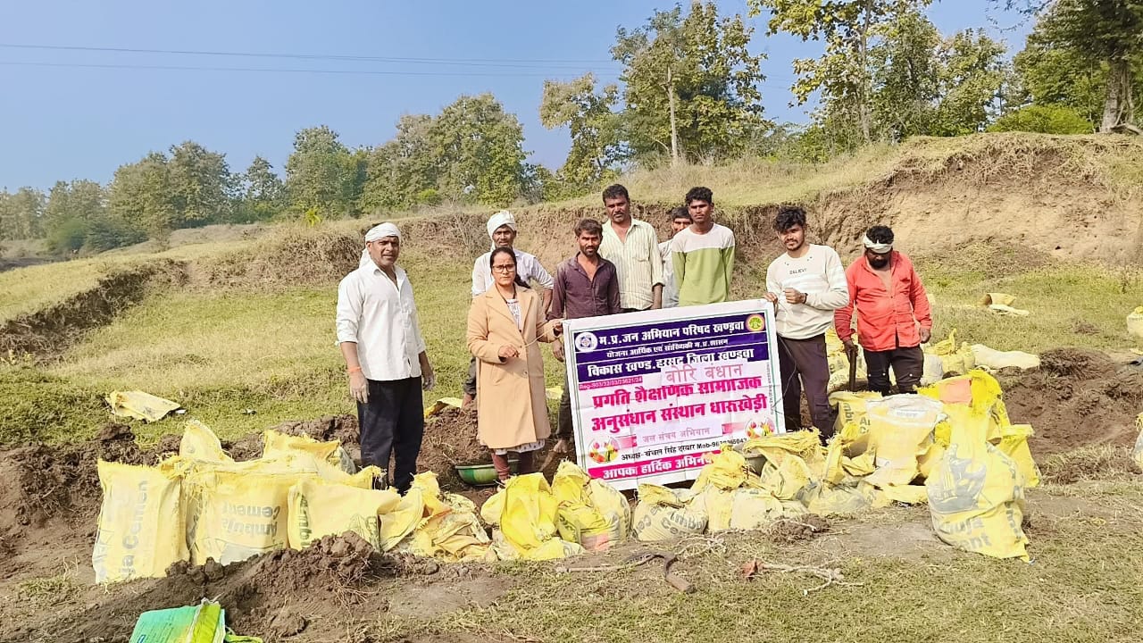 मध्य प्रदेश के खंडवा जिले के कलेक्टर ऋषव गुप्ता के निर्देश पर खंडवा जिले के सभी विकासखंडों में स्थित छोटे बड़े नालों में बहते पानी को रोकने के लिए बोरी बंधान संरचनाओं का निर्माण किया जा रहा है। इसी क्रम में ग्राम छपीपुरा, ग्राम पंचायत धारुखेड़ी में रूपारेल नदी पर जल संरक्षण को बढ़ावा देने के लिए ग्रामीणों ने श्रमदान कर बोरी बंधान संरचना का निर्माण किया। जन अभियान परिषद के जिला समन्वयक श्री जगदीश पटेल ने बताया कि बोरी बंधान के निर्माण से आने वाले दिनों में आसपास के क्षेत्र के भू-जल स्तर में वृद्धि होगी। इसके साथ ही आसपास के खेतों में सिंचाई की सुविधा बढ़ेगी तथा खेतों की मिट्टी में नमी बनी रहेगी और फसलों की उत्पादकता बढेगी। कार्यक्रम में शासकीय प्राथमिक शाला झूमरखाली की शिक्षिका नीतू ठाकुर तथा जन अभियान परिषद के नवांकुर एवं प्रगति शैक्षिक सामाजिक अनुसंधान संस्थान के अध्यक्ष श्री चंचल सिंह दरबार एवं अन्य ग्रामीणजन उपस्थित थे।