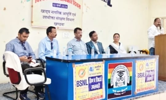 खंडवा – विश्व उपभोक्ता अधिकार दिवस का आयोजन प्रतिवर्ष 15 मार्च को किया जाता है। इसी क्रम में जिला सहकारी केंद्रीय बैंक मर्यादित खंडवा के सभाकक्ष में उपभोक्ता अधिकार दिवस के अवसर पर जिला स्तरीय कार्यक्रम आयोजित किया गया। इस कार्यक्रम में जिला आपूर्ति अधिकारी एवं डिप्टी कलेक्टर दिनेश सावले, जिला विधिक सहायता अधिकारी दिलावर सिंह के अलावा दूरसंचार विभाग की अनुविभागीय अधिकारी श्रीमती भक्ति सोनी, पश्चिम क्षेत्र विद्युत वितरण कंपनी के सहायक यंत्री तिवारी, खाद्य सुरक्षा अधिकारी राधेश्याम गोले, नापतौल विभाग के निरीक्षक आर पी गजभिए और उपभोक्ता उत्थान संगठन के मुकेश गौर ने कार्यक्रम में उपभोक्ताओं को उनके अधिकारों के प्रति जागरूक किया। कार्यक्रम का संचालन कनिष्ठ आपूर्ति अधिकारी सुनील नागराज ने किया एवं कार्यक्रम के अंत में आभार प्रदर्शन सहायक आपूर्ति अधिकारी अमित चौहान ने किया।